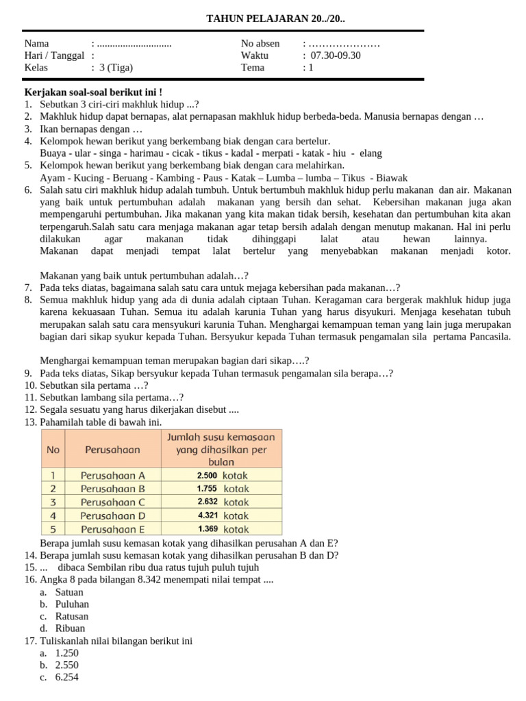 Mari kita bedah contoh soal dari masing-masing mata pelajaran yang terintegrasi dalam tema ini.